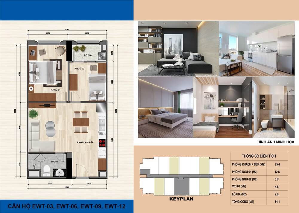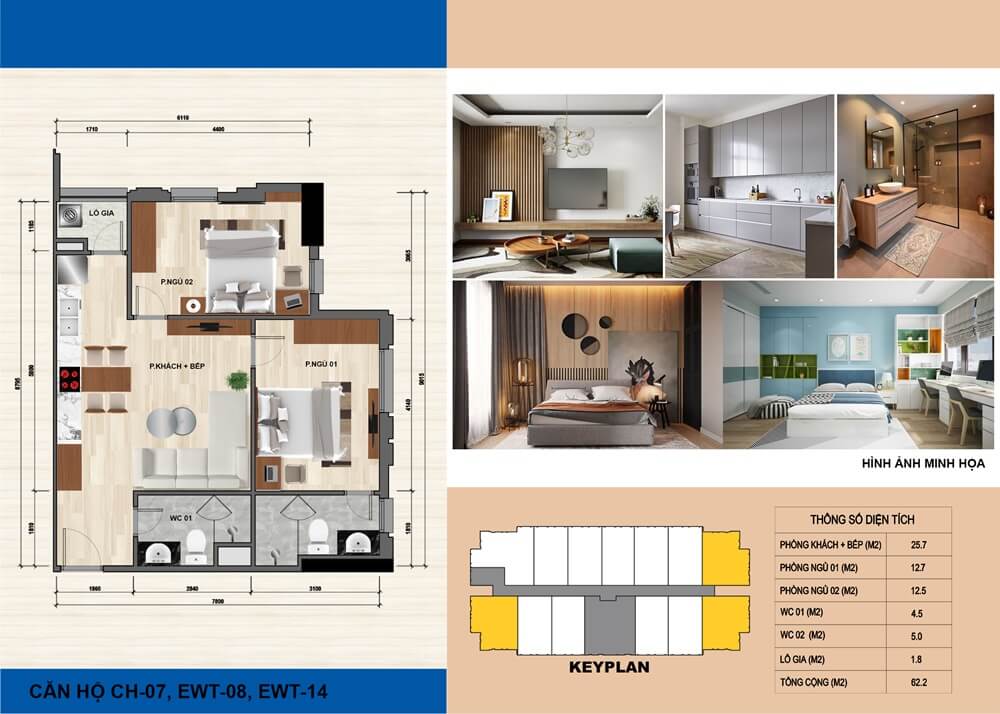 Mặt bằng chi tiết căn hộ 2PN 62.2m2